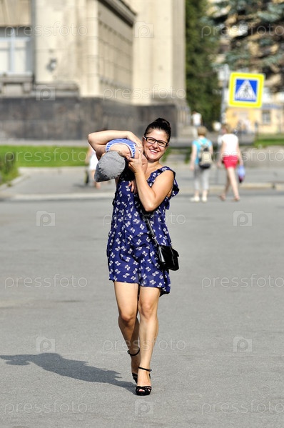 Мать в платье несет сына