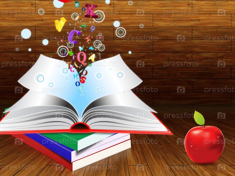 Книги и яблоко