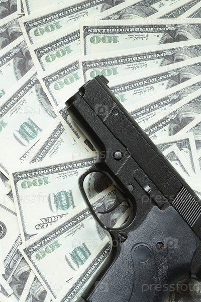 Черный автоматический пистолет на долларах