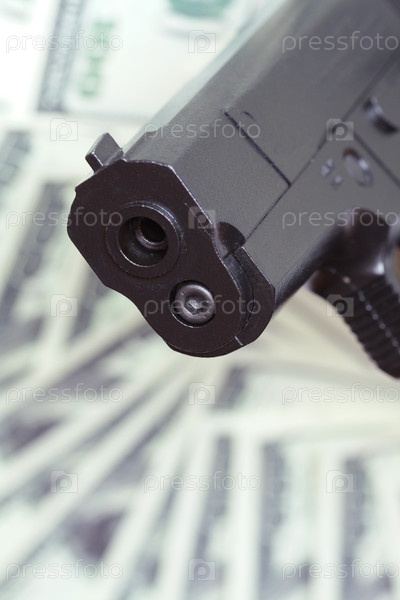 Автоматический пистолет на фоне с деньгами