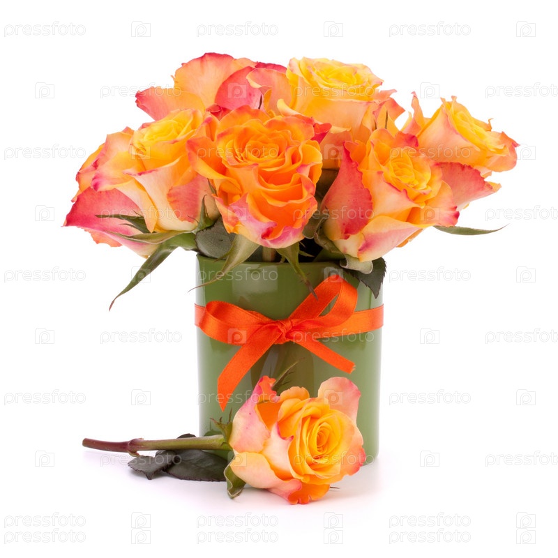 Букет оранжевых роз в вазе