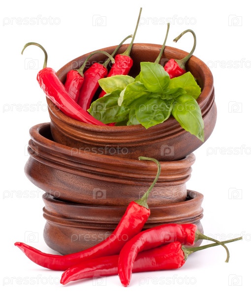 Красный перец чили в деревянных мисках