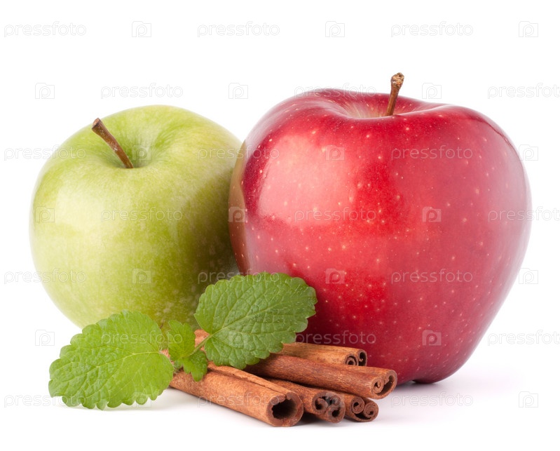 Красные и зеленые яблоки, корица и мята