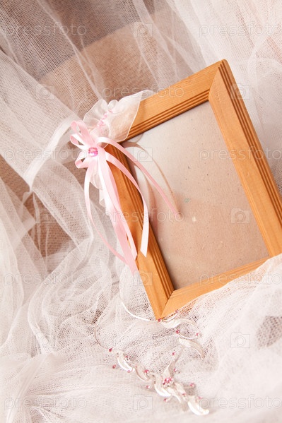 Пустая рамка на фоне прозрачной органзы