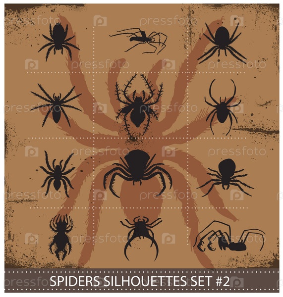 Набор силуэтов пауков
