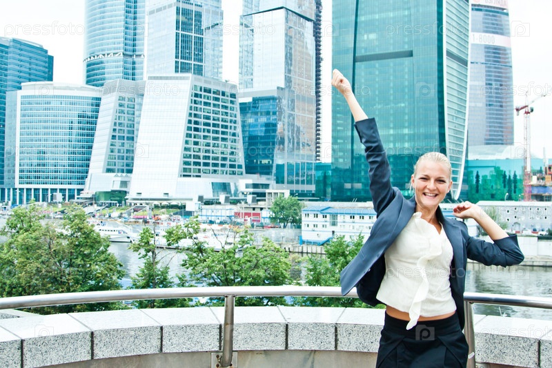 Молодая и красивая и очень счастливая деловая женщина