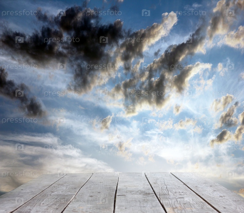 Деревянный подиум на фоне красивого неба