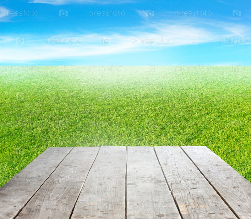 Деревянный подиум на фоне красивого неба