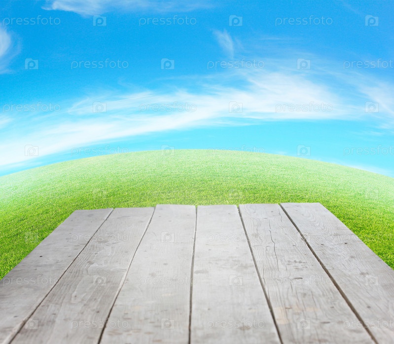 Деревянный подиум на фоне красивого неба