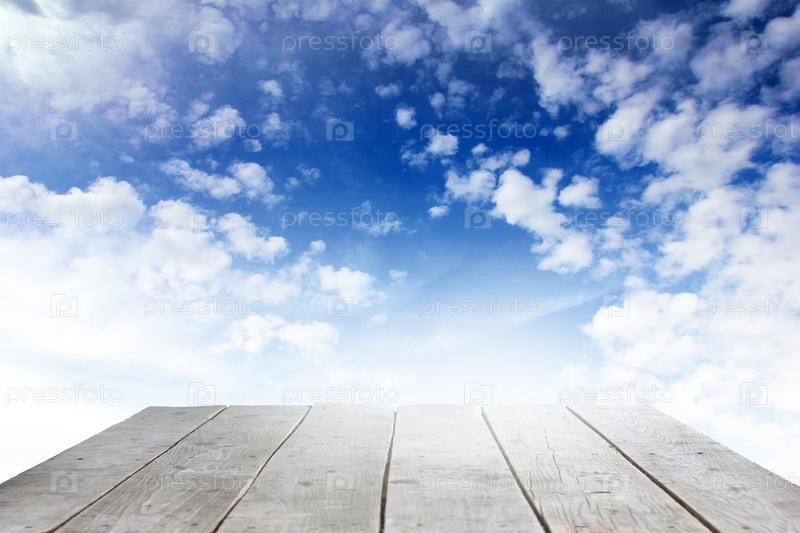 Деревянный подиум на фоне красивого неба