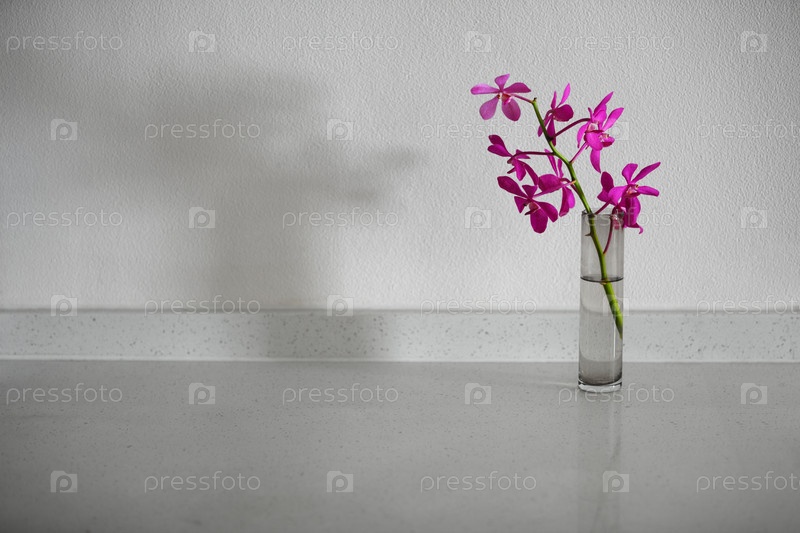 Орхидеи в вазе на белом столе