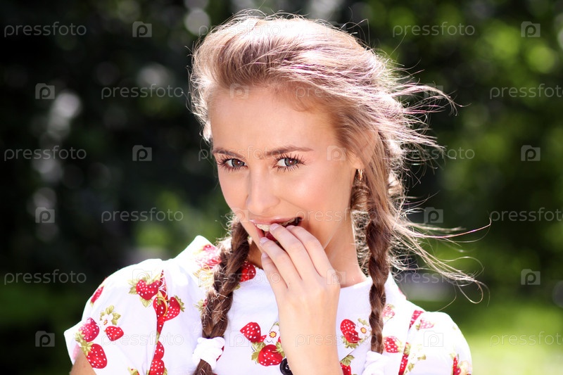 Портрет красивой девушки с клубникой