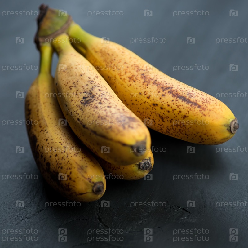 Спелые бананы-мини на темном деревянном фоне