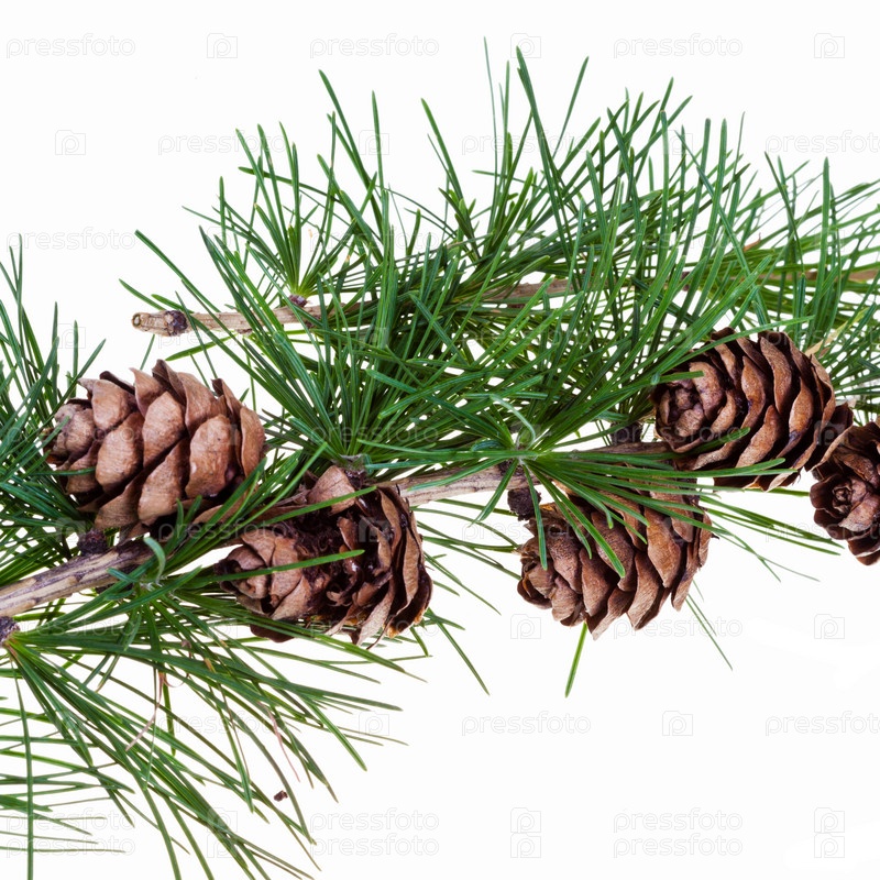 Сосновые шишки на ветке хвойного дерева