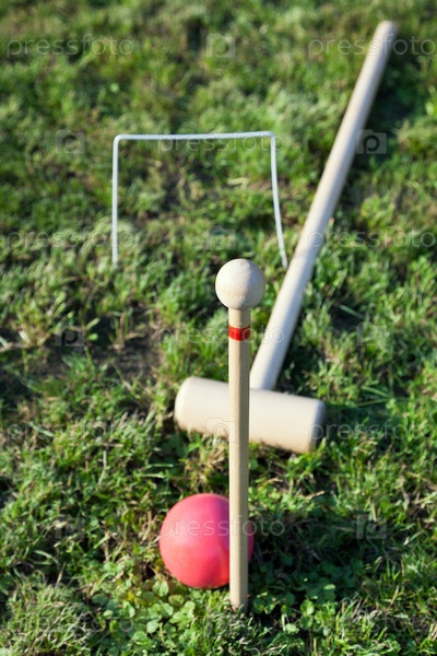 Игра в крокет на зеленом газоне