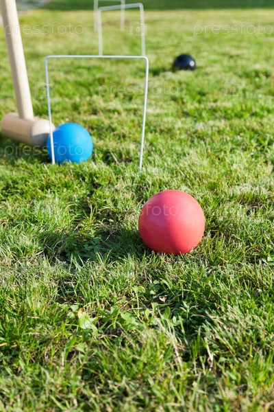 Игра в крокет на зеленом газоне