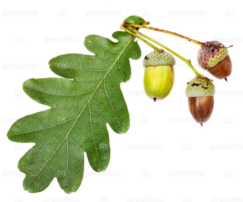 Зеленые дубовые листья и желуди