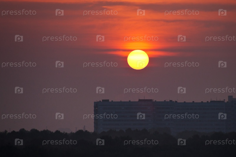 Красная заря над городом