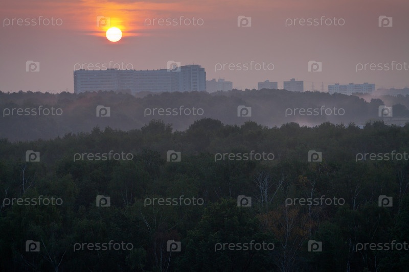 Красный восход солнца над городом