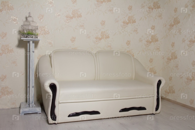 Сливочный кожаный диван в пустой комнате
