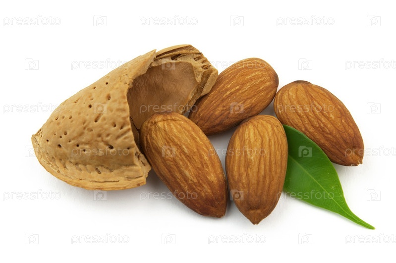 Орехи миндаль на белом фоне