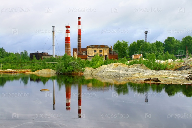 Отражение дымящихся труб в озере