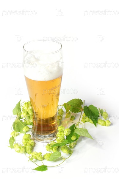 Светлое пиво в бокале и хмель