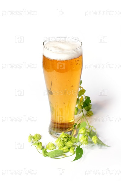 Светлое пиво в бокале и хмель