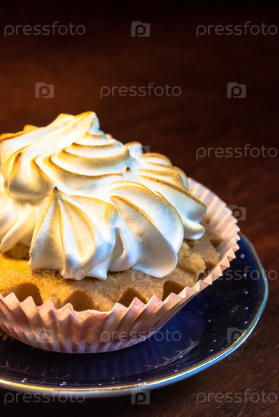 Кекс на синей тарелке