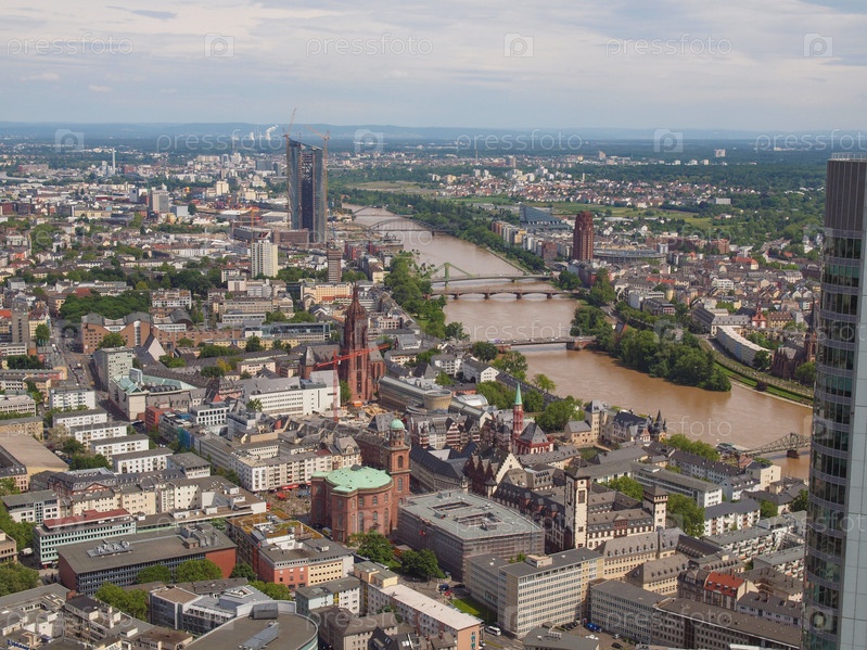 Аэрофотосъемка города Франкфурт-на-Майне в Германии