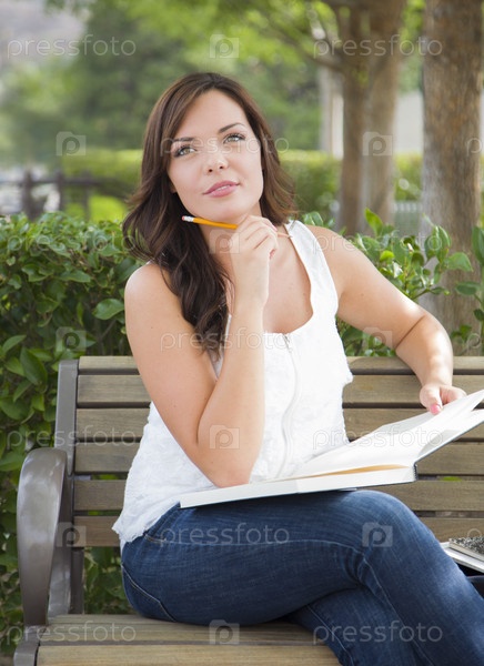 Студентка на скамейке на открытом воздухе