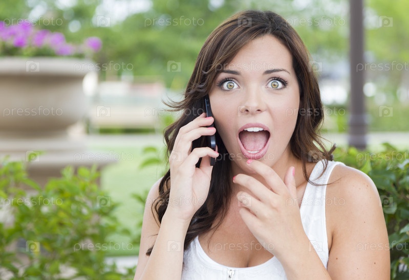 Шокированная женщина говорит по телефону на открытом воздухе