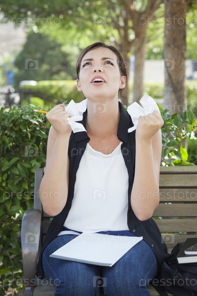 Расстроенная молодая женщина с карандашом и мятой бумагой в руках