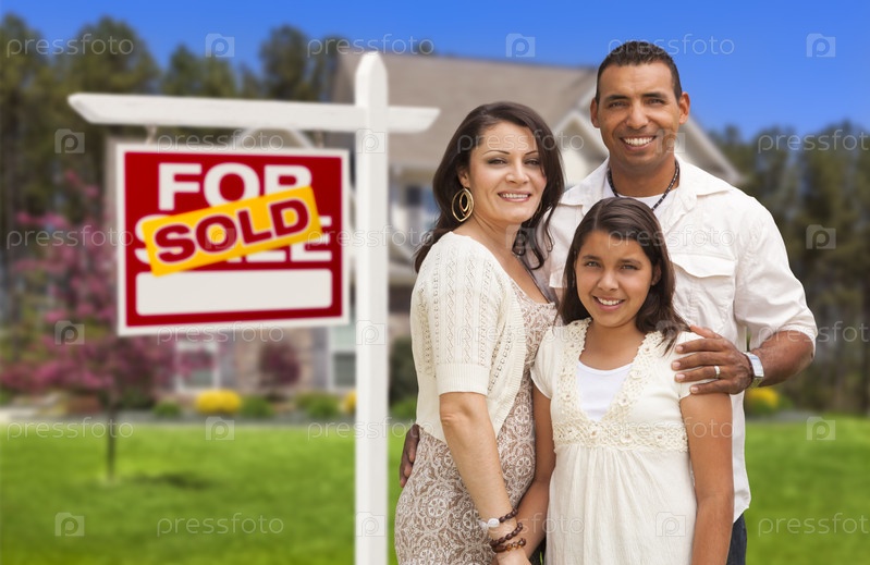 Испанская семья перед их новым домом и знак