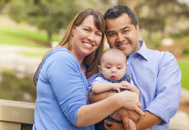 Семья смешанной расы позирует для портрета