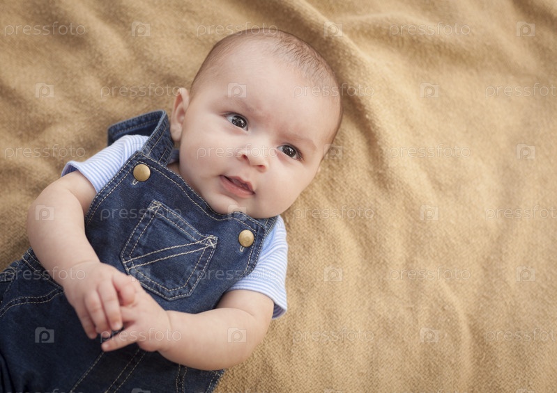 Мальчик лежит на одеяле