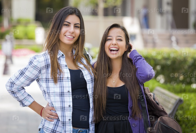 Студентки с рюкзаками в кампусе