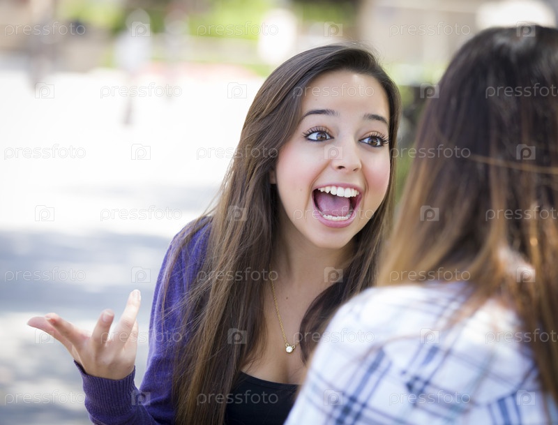 Выразительная молодая женщина разговаривает с подругой