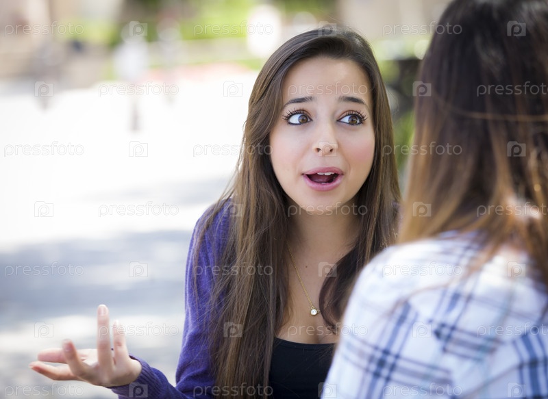 Эмоциональная молодая женщина разговаривает с подругой