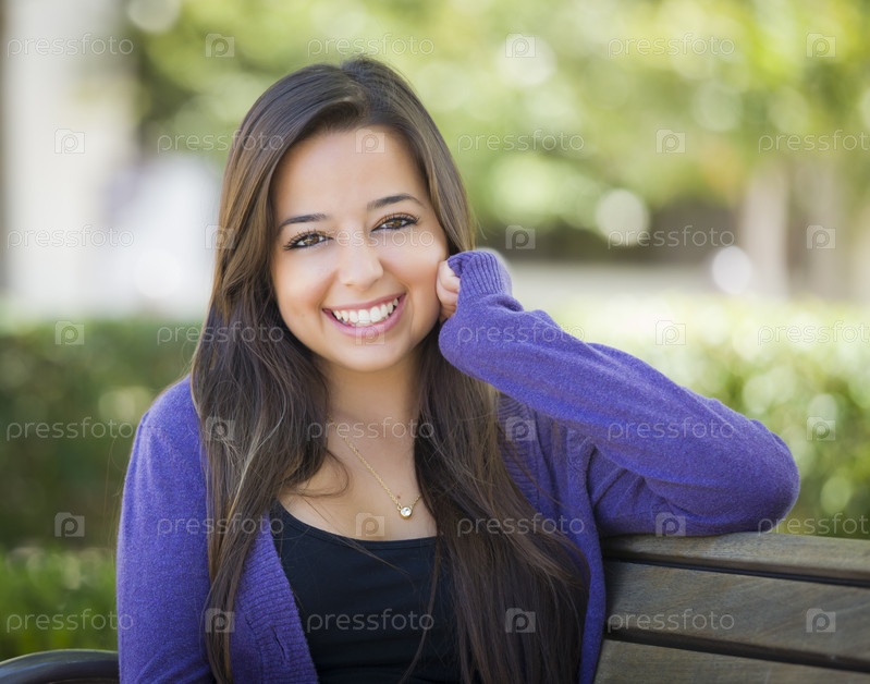 Студентка на скамейке в кампусе школы