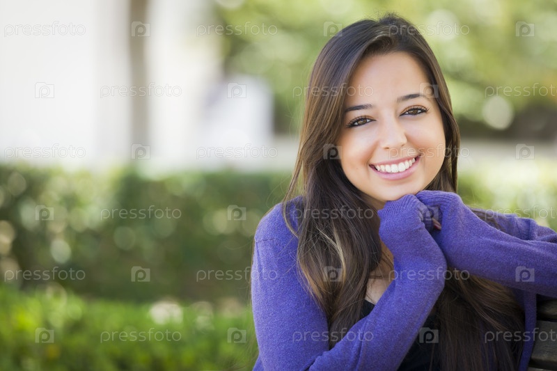 Студентка на скамейке в кампусе школы