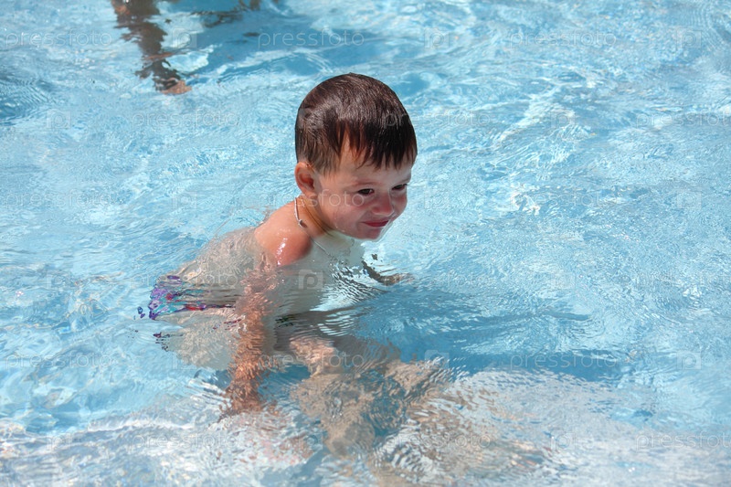 Мальчик купается в бассейне