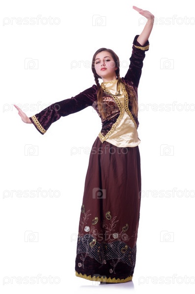Молодая женщина танцует традиционный азербайджанский танец