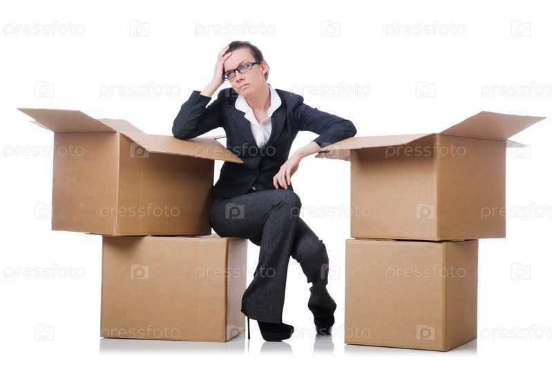 Бизнес-леди с коробками на белом фоне