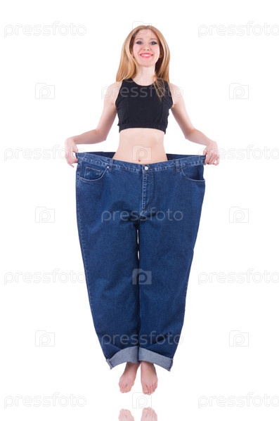 Женщина в концепции диеты с большими джинсами