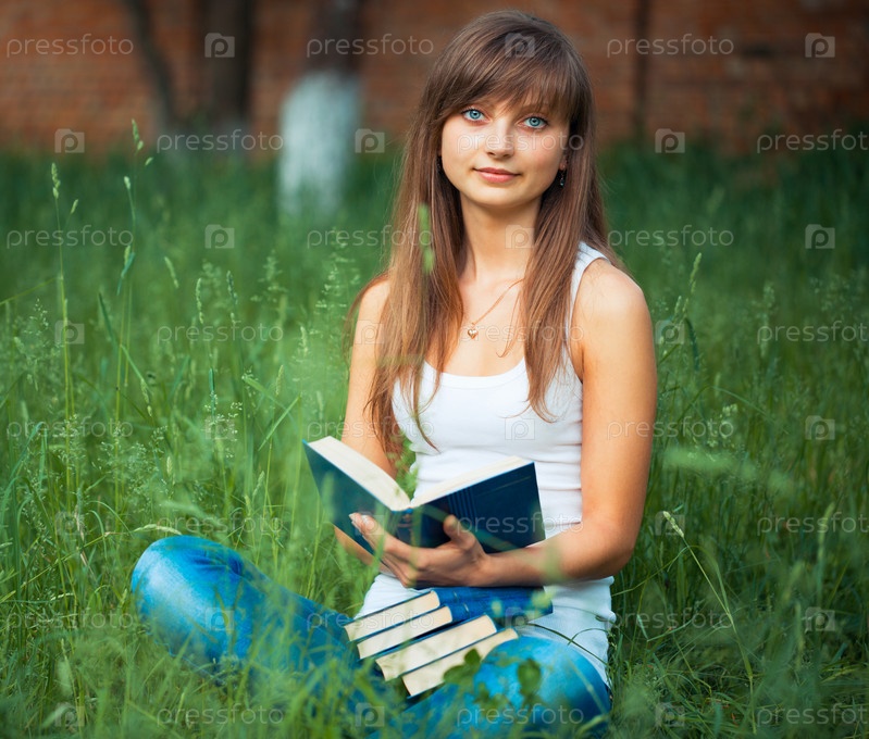 Молодая красивая девушка с книгой в парке