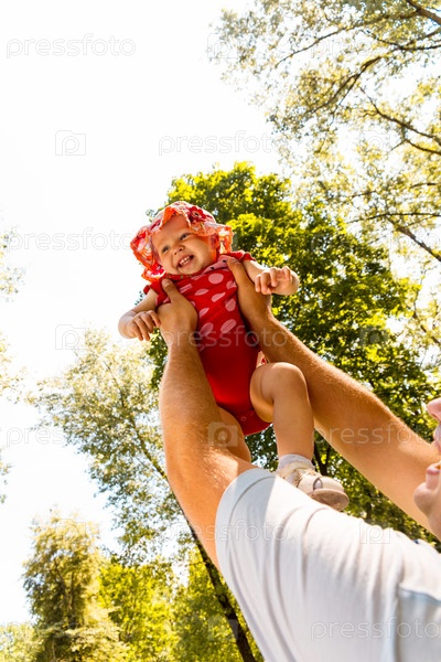 Отец подбрасывает смеющуюся дочь