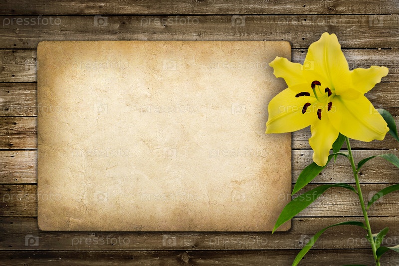 Карточка для приглашения или поздравления с желтыми лилиями в винтажном стиле