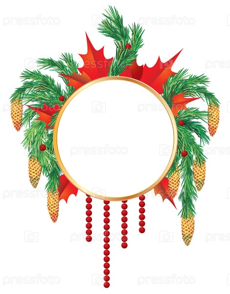Круглое новогоднее украшение из еловых ветвей с местом для текста