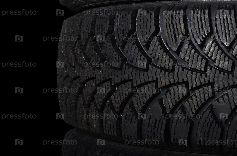 Автомобильная шина на черном фоне